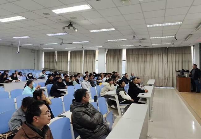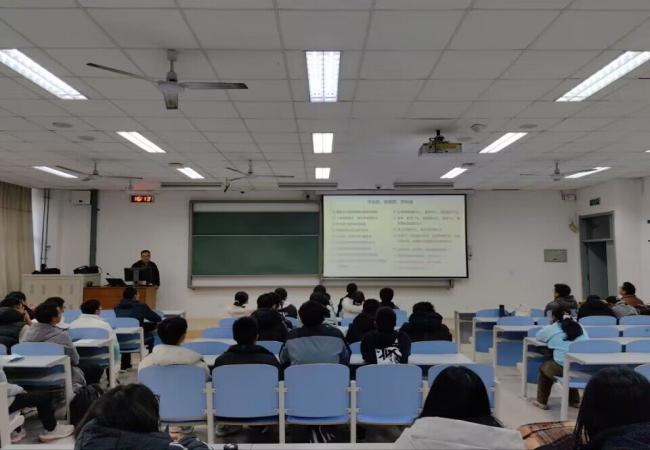 为强化化学专业学生对本专业研究领域及培养方案的认识与理解,解答同学们在专业就业方向的疑惑,增强学生生涯规划能力,11月12日下午,化学系组织2023级学生在南教110开展了以“徜徉分子世界,领略变化之美”为主题的专业介绍会暨就业主题团日活动。活动由化学系系主任卢玉坤主讲,学科负责人张龙力、党支部书记王创业、系副主任王淑涛、班主任陈曦、温聪颖受邀出席,化学2301、2302团支部全体成员参加。