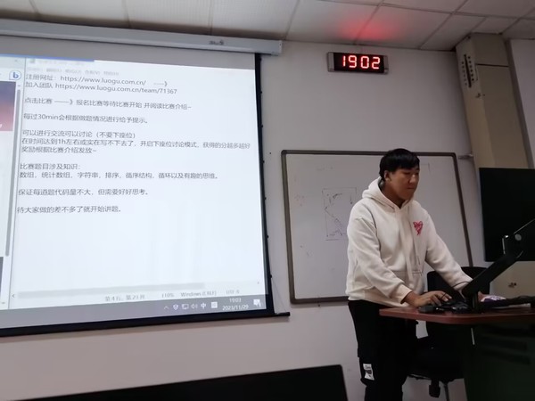 晚自习在11月29日19:00,于微机楼102如期开展。在晚自习中,张淄栋采取考试与讲解结的形式,将教学与实践结合,并在一定时间后给出提示,为学生们带来了不同于课堂的学习经历。在做题过程中,学生们积极反馈问题所在,并对问题进行了讨论与解决。为调动学生们积极性,张淄栋设置了奖励机制,为考试成绩前两名中准备了特殊礼物一份,最终,邢泓珊和尹泽宇各获得了一张免费的食堂餐券。