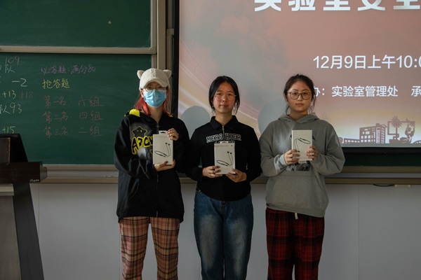 此次竞赛分为初赛和决赛两阶段。比赛初期,赛事组织者通过微信公众号等多渠道发布赛事相关内容,扩大宣传力度,鼓励各学院学生参与。初赛在线上举行,由赛事组织者在赛事通知群发送答题链接,参与学生需在规定时间内将50道题目作答完成。经过三天激烈的初赛角逐,最终36位参赛选手组成的8支代表队进入决赛。决赛伊始,主持人向各支队伍介绍比赛相关注意事项,确保比赛的公平、公正、公开。在主持人宣布比赛规则。本次比赛采取积分制,按照得分的高低排名。经过第一轮必答题与第二轮抢答题的角逐后,八支队伍进入最后一轮的选答题。随后,主持人向各队代表发放抢答器,并介绍抢答器的使用规则。最终经过三轮的评比,来自石油工程学院的六队脱颖而出获得一等奖,来自yl6809永利YL集团的四队、二队分别获得二等奖。一队、八队、三队获得三等奖,剩余队伍获优秀奖。比赛结束后,到场嘉宾上台为获奖队伍颁发奖品并合影留念。参赛选手应化2101滕国钊在赛后讲到:“参加此次实验室安全知识竞赛,让我深刻体会到实验室安全的挑战和责任,激发了我注重实验室安全,保护生命的决心。作为学生,我们要学好实验室安全知识,时刻保持警惕,严格遵守安全规范,做到安全第一。”