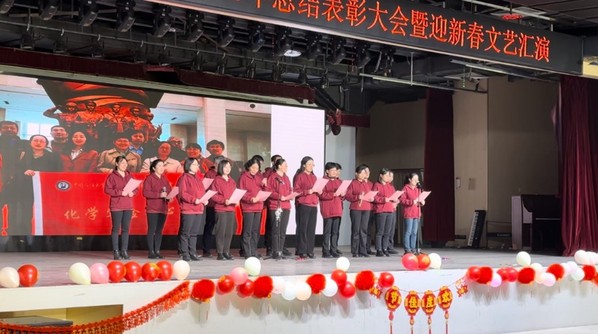 大会伊始,戴彩丽副校长发表新年贺词,她对学院过去一年取得的成绩表示肯定,并提出了新的要求和希望,鼓励大家锐意进取、携手并进,为化院更加美好的明天不懈奋斗。刘欣梅院长作了2023年工作总结报告,她从党建工作、师资队伍建设、人才培养、科研与平台建设、国际合作与交流、实验室建设和学生工作等方面对一年来学院取得的成绩进行总结,并对全体师生员工的辛勤耕耘表示感谢。随后,学院隆重表彰了2022、2023年度各项国家级、省部级、校级荣誉获得者,学科竞赛、创新创业大赛优秀指导教师,省部级、校级荣誉获奖单位和团队。接着,新入职教师登台,依次做自我介绍,并为学院和全体师生送上祝福。