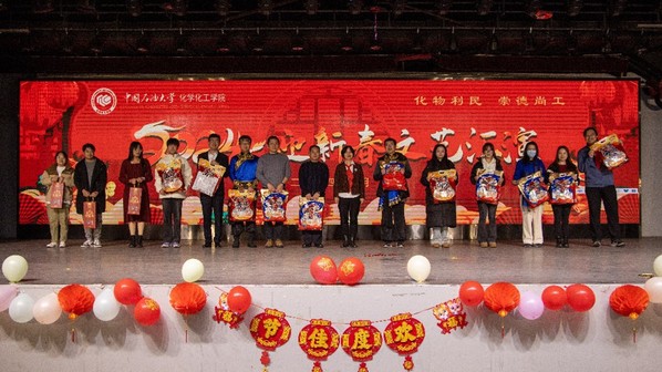 文艺汇演以应用化学系活力四射的舞蹈《快乐崇拜》拉开帷幕,动感的旋律,欢快的舞步很快将联欢会带入欢快的氛围;化学系精心编排的搞笑舞蹈《开心乐悠悠》动作幽默夸张,博得大家阵阵笑声和满堂喝彩,充分调动了现场氛围;生物与能源化工系带来合唱《早安中国》,饱含深情,满溢着对祖国的热爱之情;化工实验中心的老师们手拿花球,献上舞蹈《美丽中国》,为我们的国家、学校、学院送上深深的祝福;化学实验中心合唱《朋友》,感谢学院领导和各位同事的大力支持,祝福大家一路携手,再创辉煌;随后,环境与安全工程系带来歌舞《眉飞色舞》+《风的季节》+《为友谊干杯》,舞蹈动作整齐、活力四射,歌声旋律优美、让人陶醉,将现场的气氛推向高潮;化工系老师们身着民族服饰,将别具蒙古族风情的舞蹈《站在草原望北京》完美演绎;国重室老师们深情朗诵《展重油画卷,谱国重新篇》,将重质油全国重点实验室从无到有,逐步发展壮大,最后重组成功,迈向新篇章的全过程淋漓尽致的呈现在大家面前,获得久久的掌声;最后是学院办公室带来的压轴歌舞《相亲相爱一家人》,将联欢会进一步推向高潮,用积极向上的姿态表达了对学院和未来的美好憧憬与祝愿。汇演接近尾声,学生代表为学院各单位送上手写对联,表达新春祝愿和美好祝福。本次联欢会过程中还设置了抽奖环节,由院领导抽出24位幸运观众,让大家在收获欢乐的同时还收获了幸运。