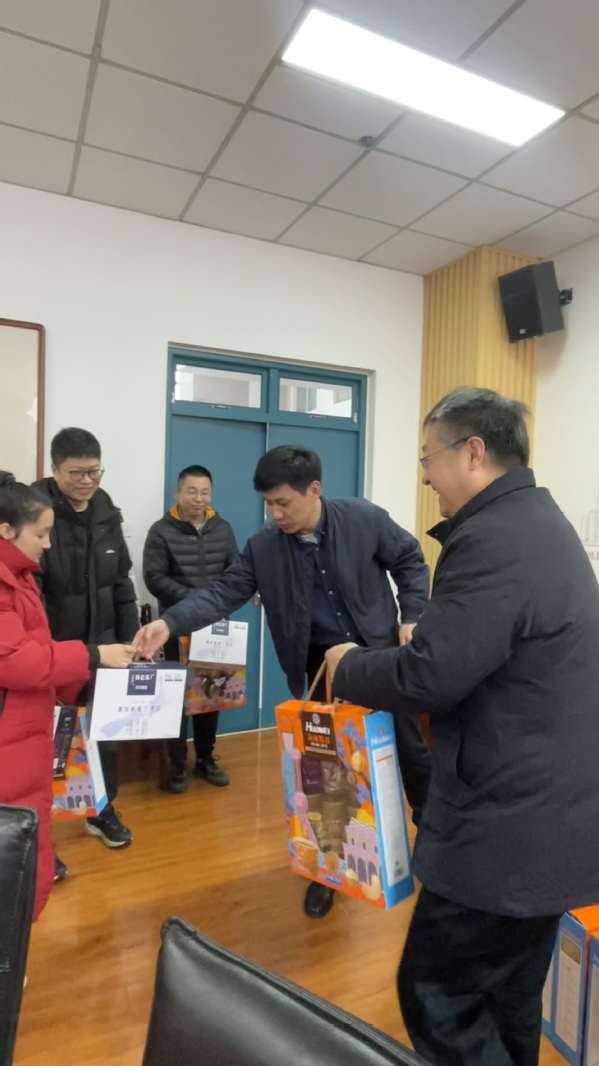 会上,老师们详细了解几位留校学生的学习和生活情况,询问他们的留校原因及需求。张永宁询问了两名博士生张帝、李恒在实验成果方面的进展,叮嘱他们要重视实验室安全、充分利用在校时间做好科研工作。他表示学院将切实解决同学们的实际困难,让大家在学校住着安心、舒心、开心,并祝愿同学们能在学校度过一个平安、愉快而充实的春节假期。徐光辉关切询问了20级维吾尔族学生阿米娜木的就业情况,并建议以阿米娜木为代表的应届少数民族学生通过“西部计划”等渠道心系家乡、服务家乡、回报家乡。博士研究生张帝表示:“这已不是我第一次留校过年,每年学院都会以各种形式看望慰问留校学生。虽然不能回家和家人团聚,但是学校有同学、有老师,我依旧能感受到了家的温暖,也感受到了学院的关爱,祝各位老师新春快乐。”会后,学院为全体留校学生发放牛奶、干果等慰问品,并合影留念。
