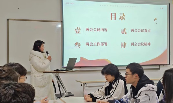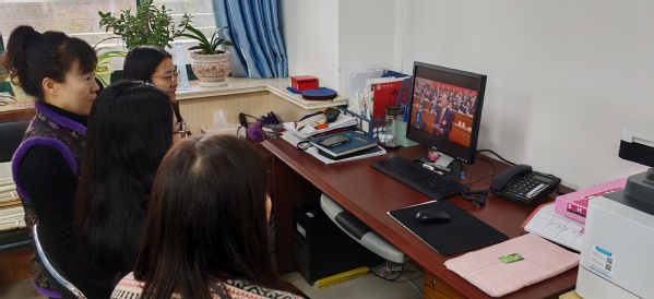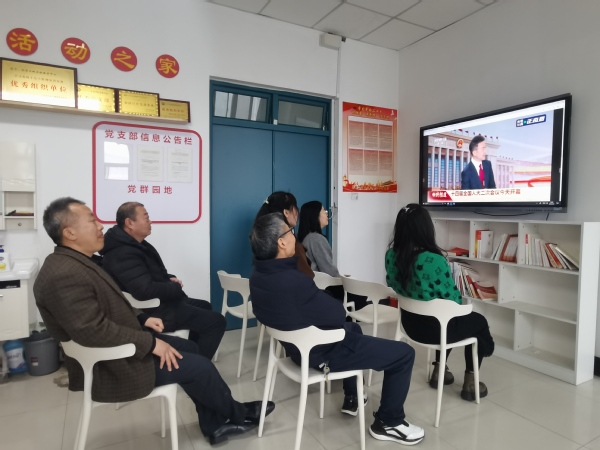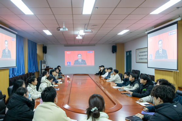 学院党委副书记徐光辉、全体辅导员和部分学生党员代表共同观看两会开幕