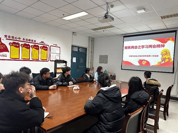 为深入贯彻学习习近平总书记在全国两会期间重要讲话精神,2024年3月11日,环境与安全工程系研究生第二学生党支部在工A617开展“学习贯彻两会精神,凝聚奋进力量”主题党日活动。活动由支部书记张雪菇主持,支部全体成员参加。