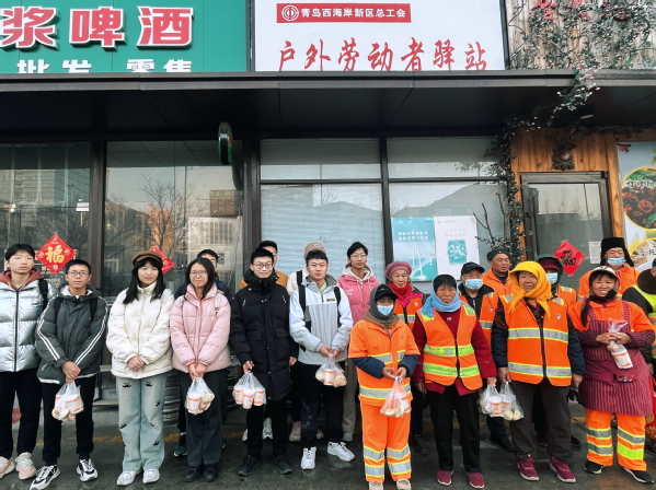 3月8日,是第114个“三八”国际劳动妇女节。为了感谢劳动妇女的辛勤付出,能化2201团支部选拔志愿者于3月8日早晨前往富春江路户外劳动者驿站为环卫工人送早餐。