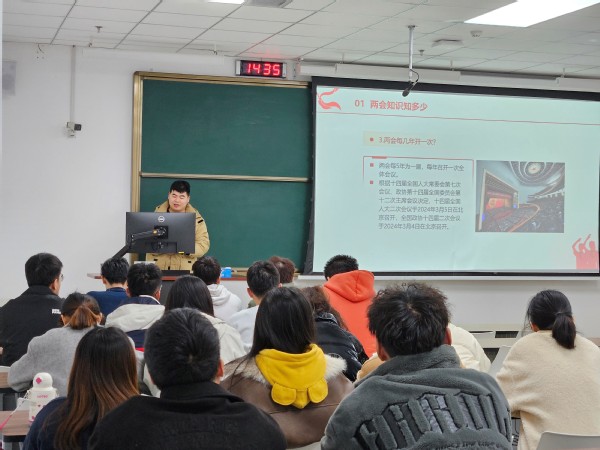 耿旭超带领支部党员从两会的由来及意义、祖国近年全面建设社会主义现代化国家迈出的坚实步伐、国家建设任务发展新质生产力等三部分认真学习两会精神。重点介绍了两会中提到的2024年国家建设任务清单——发展新质生产力,新质生产力的本质是先进生产力,涉及生物制造、新材料、低空经济等领域,与化工行业的发展息息相关。 2024年政府工作报告明确提出,“加快建设国家战略人才力量,努力培养造就更多一流科技领军人才和创新团队,完善拔尖创新人才发现和培养机制,建设基础研究人才培养平台,打造卓越工程师和高技能人才队伍”。耿旭超强调人才是发展新质生产力的关键,作为一名化工学院的学生,我们应该勤于钻研,努力创新,为新时代祖国的发展奉献自己的力量。