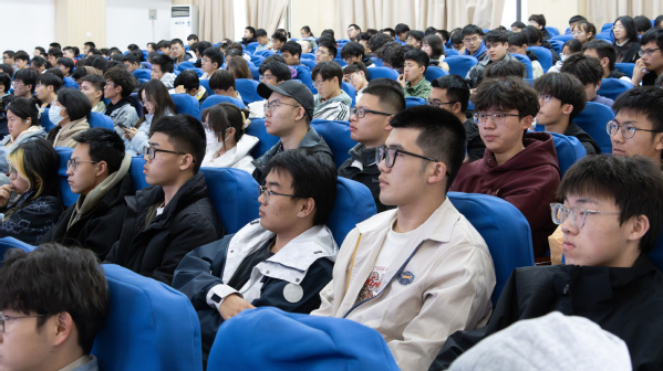校友之星、全国劳动模范张磊授课 申智诚摄