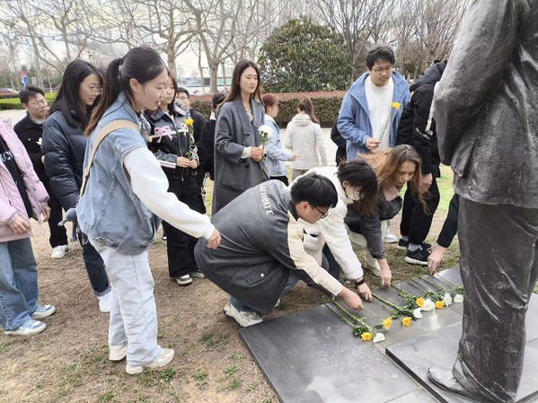 为激发团员的历史使命感与社会责任感,4月4日应化2103、化工2103、化安2202、化学2202团支部于逸夫楼杨光华塑像前举办“清明缅怀先辈,菊花遥寄敬仰”活动。