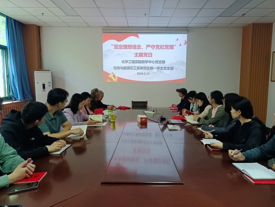 为深入学习党的二十大精神,全面落实党纪学习教育工作部署,5月13日,化学工程实验教学中心教工党支部、生物与能源化工系研究生第一学生党支部于工科A119联合开展“坚定理想信念,严守党纪党规”专题学习会,深入学习《中国共产党纪律处分条例》,深刻领悟习近平总书记关于党纪学习教育重要讲话和重要指示精神。活动由教工党支部书记张淑霞主持,各支部党员参与活动。