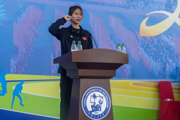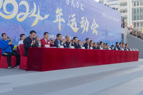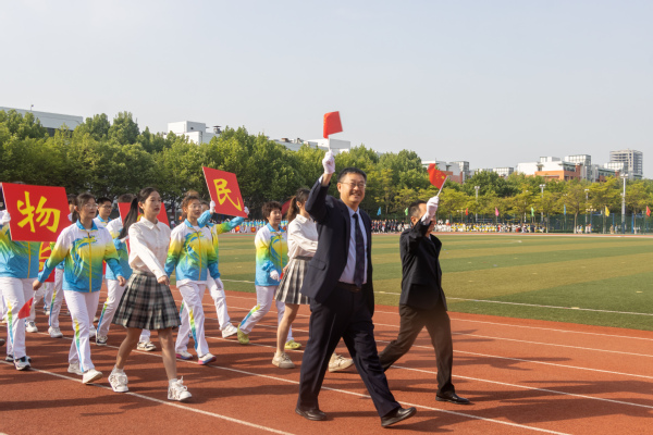 学校党委书记王勇宣布2024年运动会开幕,学校党委副书记万云波主持开幕式,学校党委副书记、纪委书记、体育运动委员会主任吴强明致开幕辞,裁判员代表、体育教学部刘高强和运动员代表、储建学院张嘉怡分别宣誓。