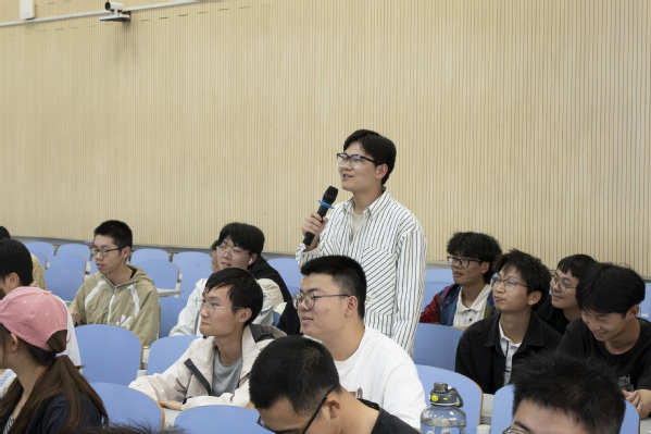 接下来,他讲述了自己高考报志愿时与石油炼化行业结缘的契机,随后分享了自己在校期间的学习经历和学习心得。然后,他结合个人的工作经历,讲述了他在工作中的遇到的困难及处理方式,分享了他能获得今天这样成就的艰难过程,在分享受中与学生积极沟通,解决学生所遇到的困难。他指出,当代大学生在校学习应脚踏实地,胸怀梦想,树立远大的理想与目标,做到干中学、学中干、努力干成每一件事;切忌好高骛远,每个阶段的成就都是过去努力的积累,没有偶然的成功,一切成功都是努力的必然。最后,他对参会学生提出期望,他希望学院学生能够刻苦学习,不断提高自身专业素养,在人生的不同阶段完成不同的事,走好人生每一步,争取在实现中华民族伟大复兴的道路上实现自己的人生价值。