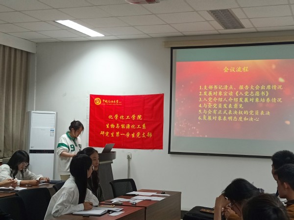 5月31日,生物与能源化工系研究生第一学生党支部于逸夫楼340召开接收预备党员大会,会议由支部书记郑亚茹主持,应到会有表决权党员29名,实到会有表决权党员27名,超过本支部有表决权党员半数以上,符合规定人数,可以开会。
