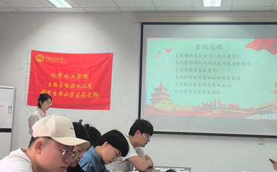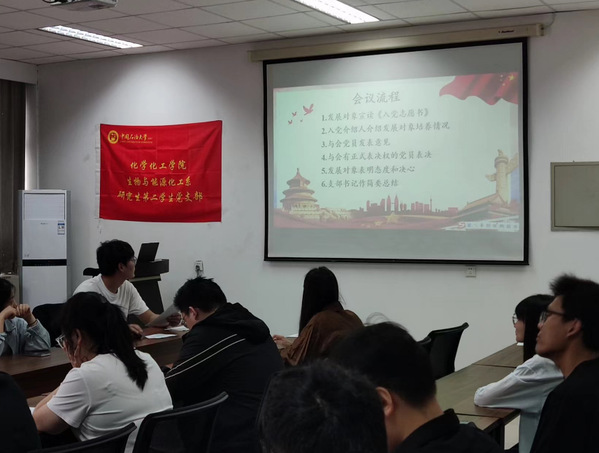 024年5月31日晚19点,生物与能源化工系研究生第二学生党支部于逸夫楼340召开预备党员接收大会,会议由支部书记赵锦程主持,应到会有表决权党员33人,实到有表决权党员23名,超过本支部有表决权党员半数以上,符合规定人数,可以开会。