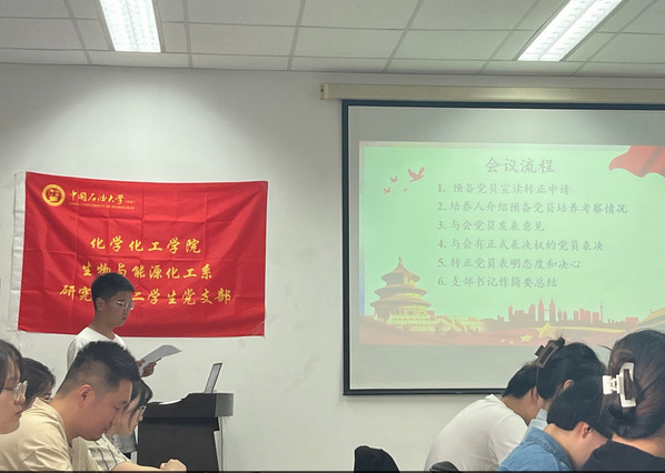 2024年6月5日上午10:00,yl6809永利YL集团生物与能源化工系研究生第二学生党支部于逸夫楼340召开预备党员转正大会。会议由支部书记赵锦程同志主持,应到会有表决权党员33人,实到有表决权党员23名,超过本支部有表决权党员半数以上,符合规定人数,可以开会。