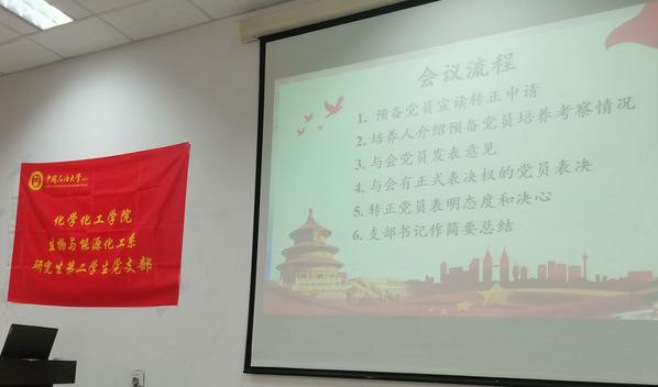 会议由赵锦程同志清点、报告应出席党员人数和实际到会人数、宣布本次会议的主要内容,讨论预备党员李壮、李晓晗同志的转正事宜,并介绍会议流程。首先由李壮、李晓晗同志依次宣读《转正申请书》,汇报预备期内的思想、学习和工作等方面的情况和不足之处的改进情况,表明自己对转正的态度和今后的决心。