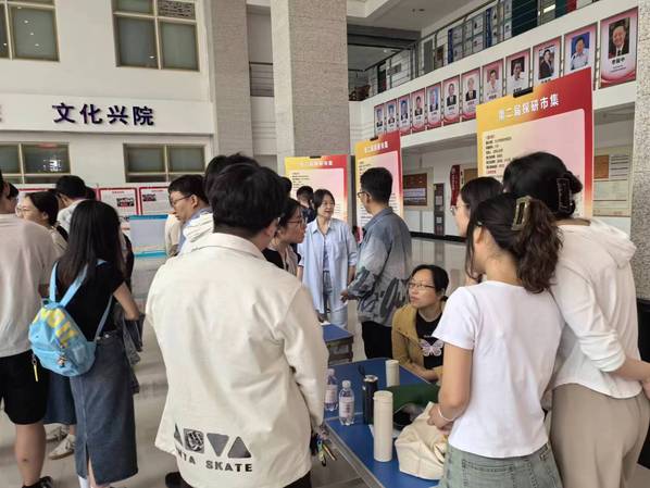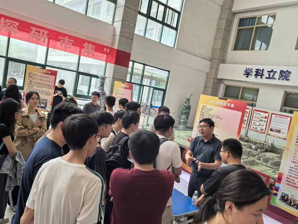 为了培养学生科研的兴趣,指导科研升学方向选择,yl6809永利YL集团于6月14日上午在工A大厅举办第二届“探研市集”。本次活动以培养科研兴趣,激发创新思维为主题,邀请学院15支科研团队师生参展,为学生讲解课题组的研究方向,解答疑惑,吸纳更多的热爱科研的本科生加入团队,100余名本科学生参与活动。