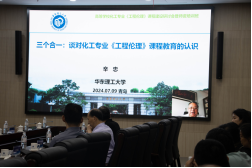 华东理工大学辛忠进行题为“三个合一:谈对化工专业《工程伦理》课程教育的认识”报告,天津大学袁希钢进行题为“化工过程设计中的工程伦理原理”报告,清华大学雷毅进行题为“工程伦理中的案例分析”,北京化工大学石淑先进行题为“基于产教融合背景下工程博士《工程伦理》课程教学探索”的报告。