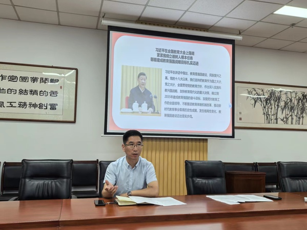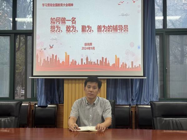 为深入学习贯彻全国教育大会精神,进一步推动教育事业的高质量发展,9月27日,辅导员党支部于工科A121组织召开全国教育大会精神专题学习会。学习会以“赓续育人初心、担当时代使命”为题,由党支部成员分专题做学习体会分享,旨在将会议精神内化于心、外化于行,转化为辅导员的育人效能。会议由辅导员党支部书记窦雅琴主持,党支部全体党员参会。