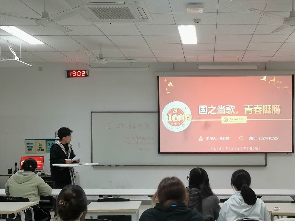 活动伊始,王延杰通过六个关键瞬间,带领支部成员回顾中国建国以来的艰辛光辉岁月。从1949年建国、1963年第一颗原子弹爆炸、1979年邓小平访美到1994年扶贫攻坚、再从2009年阅兵到2024年神州十八号发射成功,无不宣告中国的崛起。铭记历史,感恩先辈。王延杰进一步分享“人民工匠”国家荣誉称号获得者许振超、《大地之光》话剧原型李四光同志的光荣事迹,号召大家以英雄为榜样,坚定走好以后的路。