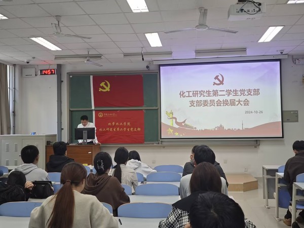 为进一步加强基层党组织建设,根据《中国共产党章程》和《中国共产党基层组织选举工作条例》等有关规定,10月26日14时30分,化工研究生第二学生党支部在南教楼108教室召开党员大会,进行党支部委员会换届选举工作。会议由康博远主持,支部学生党员、预备党员及部分积极分子参会。