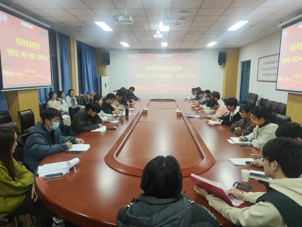 为深入学习贯彻党的二十届三中全会精神,深刻领会全会的重大意义和丰富内涵,化院学生会党支部于11月30日晚在工科A座121组织召开了以党的二十届三中全会精神为核心的主题学习会。会议由党支部书记吴雪莹主持,学生会党支部全体成员参加。
