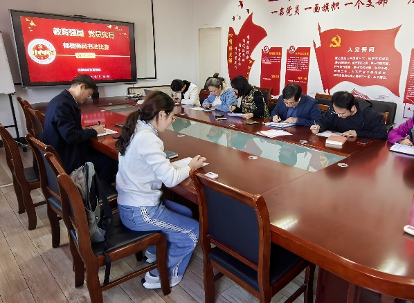 此外,活动还设置了“教育强国,党员先行——师德师风书法比赛”环节,老师们我手写我心,通过书法这一独特形式,进一步坚定了理想信念,增强了责任感和使命感,为推动教育事业的持续发展注入了新的活力。
