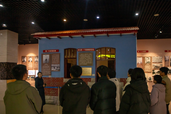 在讲解员的引导下,支部成员参观了烈士纪念馆主馆、抗战馆和军魂馆,从青岛市第一个党团组织成立的历史意义,到为维护人民利益而牺牲的平凡英雄故事,支部成员深刻感受青岛百年来厚重的革命历史。抗战馆以“铭记”为主题,陈列青岛两次被日本侵占长达16年战争罪行历史图片以及青岛军民抗战的历史;军魂馆以“破晓”为主题,主要讲述抗战胜利后青岛党组织领导的地下斗争以及开展护厂、护市、护校等英勇斗争。一件件珍贵的文物、一张张生动的照片、一段段震撼的故事,使得在场学生深刻体会到革命先烈为争取民族独立和人民解放所作出的巨大牺牲,吸引着每位学生伫立良久。参观学习结束后,支部成员来到革命烈士英名碑前,为烈士默哀、献花。“烈士们用鲜血和生命换来了今天的和平与幸福,他们的名字和精神如同明灯,照亮后人前行的道路,我们应该珍惜当下,铭记历史,在新时代贡献自己的力量。”朱宇飞说道。