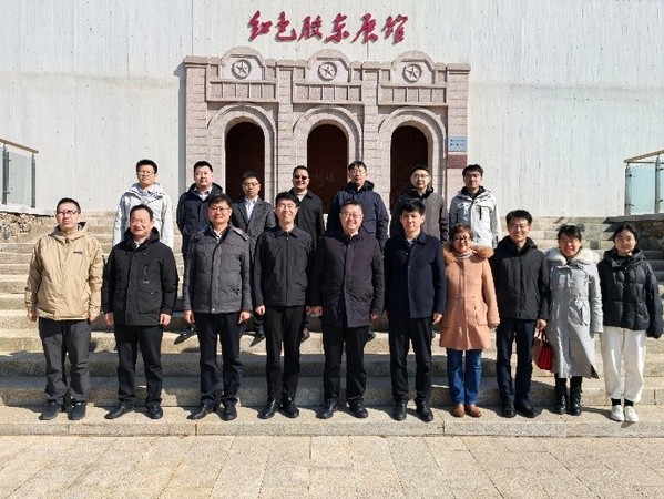 学院师生在红色胶东展馆前合影留念