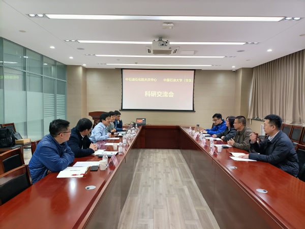胡涵对孙发民一行的到来表示热烈欢迎,并简单介绍了学院现状、发展方向等,参会教师分别介绍了各自团队的研究领域和进展。孙发民介绍了大庆中心的基本情况、目前遇到的技术难题。最后双方就关心的研究技术进行了深入讨论,并表示希望双方通过此次交流,加强在原油炼制升级、催化反应工程、炼油与人工智能结合、催化剂制备等领域的技术创新合作,推动双方共同进步发展。