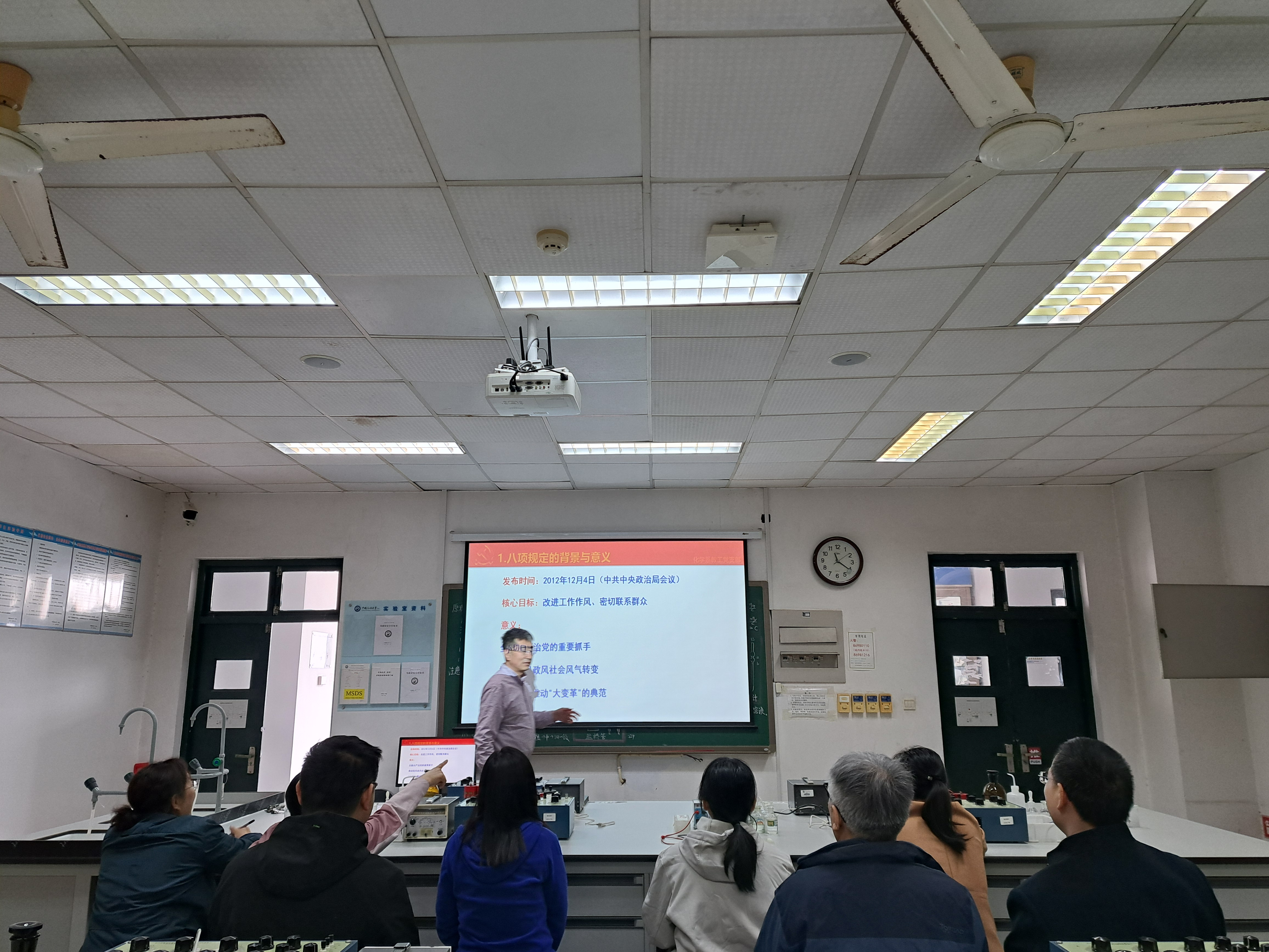 本次学习主要以支部书记讲党课的形式体现。王创业同志带领教职工系统学习了中央八项规定精神的核心内容、重要意义及实践要求,以及并结合实际案例,深入剖析了违反八项规定精神的典型问题。他强调,学习贯彻中央八项规定精神是改进工作作风的重要举措,全体教职工要深刻领会其精神实质,切实增强纪律意识和规矩意识,将作风建设贯穿于日常教学、科研和社会服务工作中。