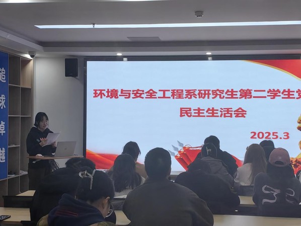 为深入学习两会精神,3月12日下午18点,环境与安全工程系研究生第二学生党支部在18号楼一站式服务大厅会议室联合召开“学习贯彻两会精神 赋能成长成才”主题党日活动。