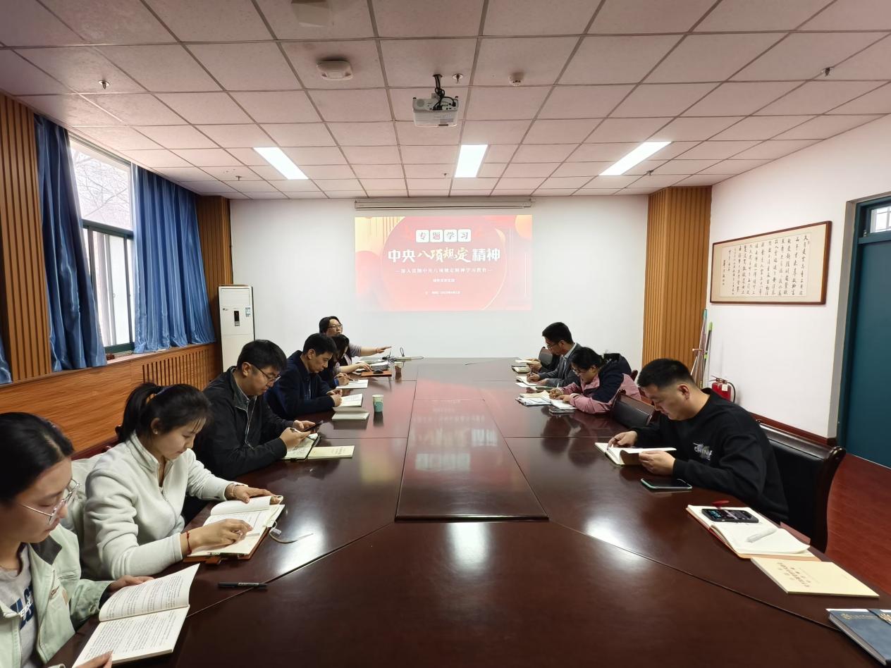 4月1日上午,辅导员党支部在工科楼A119会议室召开中央八项规定精神专题学习会。会议由党支部书记窦雅琴主持,支部全体成员参会。