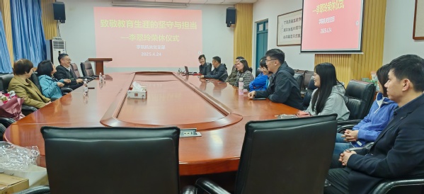 仪式在一段温暖的回顾视频中拉开帷幕。视频里,一张张珍贵的工作照片、一个个忙碌的身影、一句句饱含深情的学生祝福,生动展现了李翠玲在37年工作生涯中,始终坚守教学管理岗位,以高度的责任心和专业素养,精心处理课程安排、考试组织、学籍管理等繁杂事务,为学院教学工作的平稳运行保驾护航的点点滴滴。