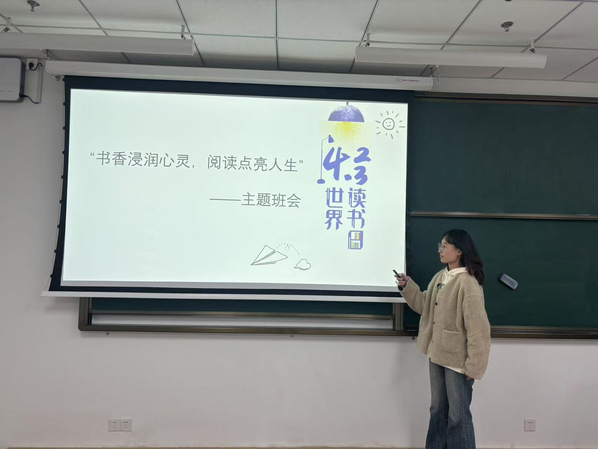 为使同学们深入了解“世界读书日”,让学生深刻理解读书的重要性以及其对个人成长的积极影响,共同营造一个浓郁的读书环境。2025年04月21日,化研2404班在综合楼007A教室成功举办了“书香浸润心灵,阅读点亮人生”主题班会。本次班会由班长邱榆婷同学担任主持人,班级全体同学参加。