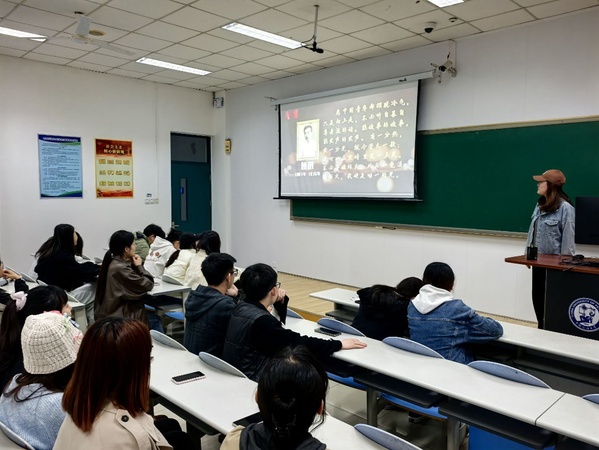班会伊始,组织委员温轩以一段短视频《他们,永远年轻》拉开序幕。影片聚焦陈延年、瞿秋白等青年烈士的壮烈人生,生动展现他们为民族解放慷慨赴义的青春剪影。“他们牺牲时与我们年龄相仿,却用生命诠释了何为信仰。”温轩在发言中号召同学们铭记历史,以新时代研究生的责任传承红色基因。
