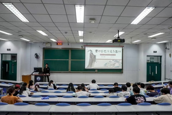 在期盼的呼声中,刘思伯带大家开启书法文化之旅。他从书法的起源娓娓道来,讲述了从甲骨文、金文到篆、隶、楷、行、草的演变历程,每一种字体背后都承载着特定时代的历史记忆和文化内涵。通过生动的讲解,大家了解到,书法不仅是文字的书写艺术,更是中华民族精神与审美情趣的结晶,它蕴含着“刚健有为”的进取精神、“和而不同”的包容理念,以及“虚实相生”的美学智慧。