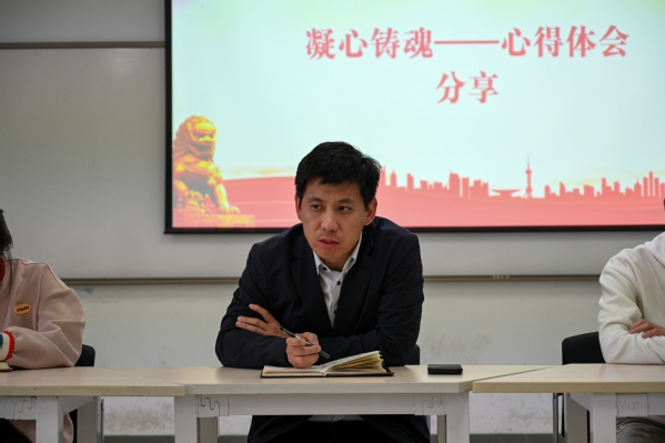 学院党委副书记徐光辉以 “持之以恒纠作风,挺膺担当守初心” 为主题作总结讲话。他指出,作风建设是党的生命线,全体党员需从三方面深化实践:一是以 “徙木立信” 之决心改进自身。 继承党的优良传统,从 “一根灯芯” 的节俭精神中汲取力量,坚决破除 “躺平”“摆烂” 等不良倾向,以钉钉子精神推动每一项工作落地见效。二是以 “向下扎根” 之姿态联系群众。 主动深入基层调研,建立常态化的学生需求反馈机制,把 “问题清单” 转化为 “服务清单”,让作风建设真正扎根同学心间。三是以 “刀刃向内” 之勇气守牢底线。 牢记 “小事小节中有党性、有原则”,在物资采购、活动经费使用等环节严守纪律规矩,杜绝 “微腐败”,同时敢于对身边的形式主义、官僚主义现象 “亮剑”,共同营造风清气正的学生工作生态。