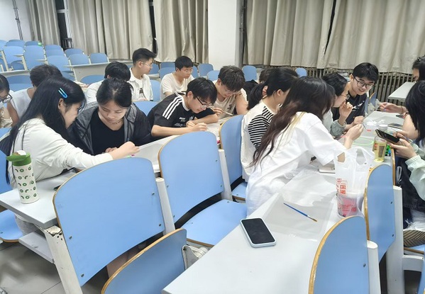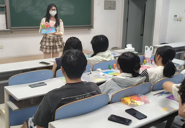 活动现场,胶片成为传递情绪的“信使”,将抽象心理状态转化为具象艺术表达。参与者围绕“焦虑、勇气、蜕变、接纳”等关键词,运用透明胶片、冷色调荧光颜料等材料,结合学习生活中的真实经历创作作品:螺旋线条勾勒压力与动力的博弈,分支链条象征社交圈的延伸拓展,断裂又重组的化学键则映射挫折后的心理修复。同学们手持亲手制作的胶片,分享创作构思:扭曲褶皱、暗角重叠的胶片,是“焦虑的阴影”,对应着压力下混沌思绪;穿透孔洞的明亮光线,化作“勇气的光束”,象征黑暗中燃起的希望;褪色与新生交织、光影结构重组的画面,晕染出“蜕变的光晕”,诉说破茧成长的历程。色彩斑斓的胶片碎片经拼贴,交织成流动彩虹,破碎重生的故事化作温暖光晕,传递着治愈力量。同学们围坐交流,创作者讲述胶片背后的情绪故事,聆听者在斑驳纹理里捕捉共鸣,于光影交织中直面内心,读懂情绪、接纳自我,收获心灵治愈与成长动力。