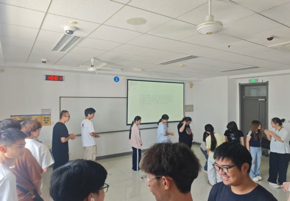 接着,大家进行“口香糖粘哪里”游戏。从个人挑战到双人配合,再到团体协作,大家通过完成各种趣味肢体连接任务,有效拉近了彼此距离;超音速传话”和情景模拟游戏“我迟到了”将活动推向高潮,同学们在充满戏剧性的问答和肢体演绎中提升着彼此间的默契与协作能力。随着活动进入尾声,同学们开始分享自己的活动感受,交流自己的心得,纷纷表示受益颇丰。
