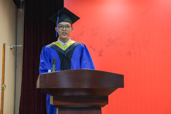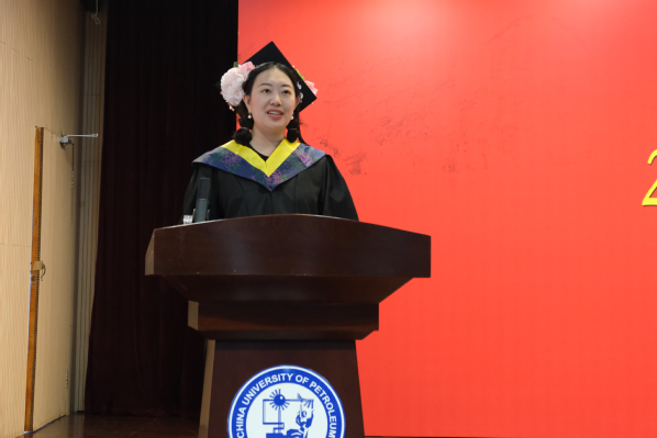 化学工程与工艺专业2021级本科生牛小月作为本科生代表发言,她深情回顾了在学院求学的充实生活,是学校和学院给予了他实现科学梦想的机会,他表示今后会在追求科学的道路上奋勇前进,为国家能源事业贡献才智和力量。
