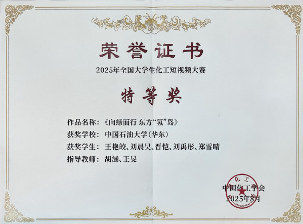 今年的全国大学生化工短视频大赛吸引了全国63所高校的139支队伍参与,经初赛专家函评、网络公众投票两阶段遴选,最终80支队伍进入决赛阶段。决赛设置科学严谨性与大众传播力双维评审标准。最终评选出特等奖5项、一等奖10项、二等奖20项、三等奖45项。由我院研究生王艳皎等5位同学创作的作品《向绿而行 东方“氢”岛》荣获全国特等奖。该作品将海水电解制氢、燃料电池运行过程与青岛新兴产业建设有机融合,通过形象生动的手工氢能小车演示,展现了科技对绿色发展的有力支撑,巧妙诠释了化工新技术在城市高质量发展中所发挥的不可替代的作用。