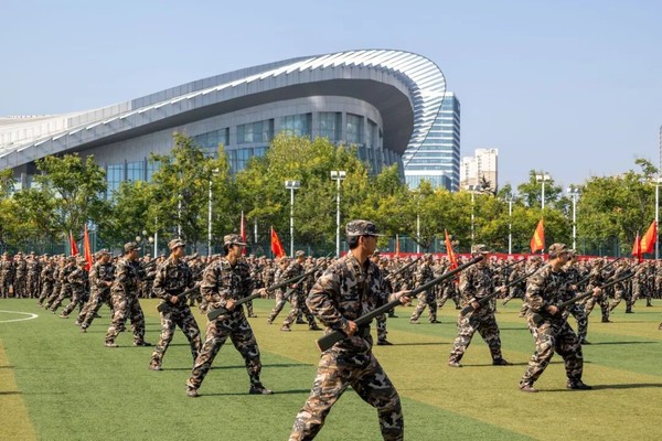 随后进行的军事科目汇报表演精彩纷呈,刺杀操凌厉果断、匕首操敏捷迅猛、应急棍虎虎生风、信号旗变幻精准,同学们整齐划一、刚劲有力的表演赢得现场阵阵掌声。其中,我营负责刺杀操科目展示,体育场上,化院学子英姿飒爽,一声声“杀”直冲云霄,展现着yl6809永利YL集团25级学子,蓬勃向上的朝气和顽强拼搏的精神。