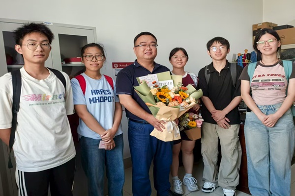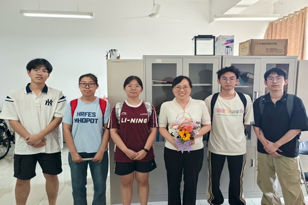随后,一行人前往温聪颖副教授办公室。作为化学2302班班主任,温聪颖老师持续关注并悉心指导班级学生的成长。一束鲜花,承载着诚挚的感恩之情。温聪颖老师接受鲜花后,与大家亲切交谈,强调大学阶段不仅是知识积累的过程,更是思维与能力锻炼的关键时期,鼓励学生保持好奇心、积极提问,在实验与理论中深入体会化学学科的独特魅力。