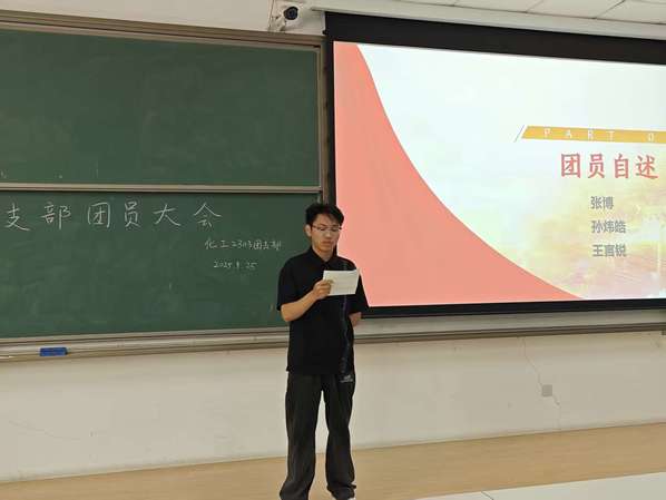 为充实党的新生力量,落实团中央关于团员推优入党的工作要求,推动党的事业发展,化工2303团支部于9月25日在南教110开展了第七次支部团员大会。本次大会在上级学生党组织选派的党支部支委成员指导下进行,由正式党员李文轩、张学东监督,团支部书记宋明哲主讲,支部全体成员除两人请假外均参与会议。