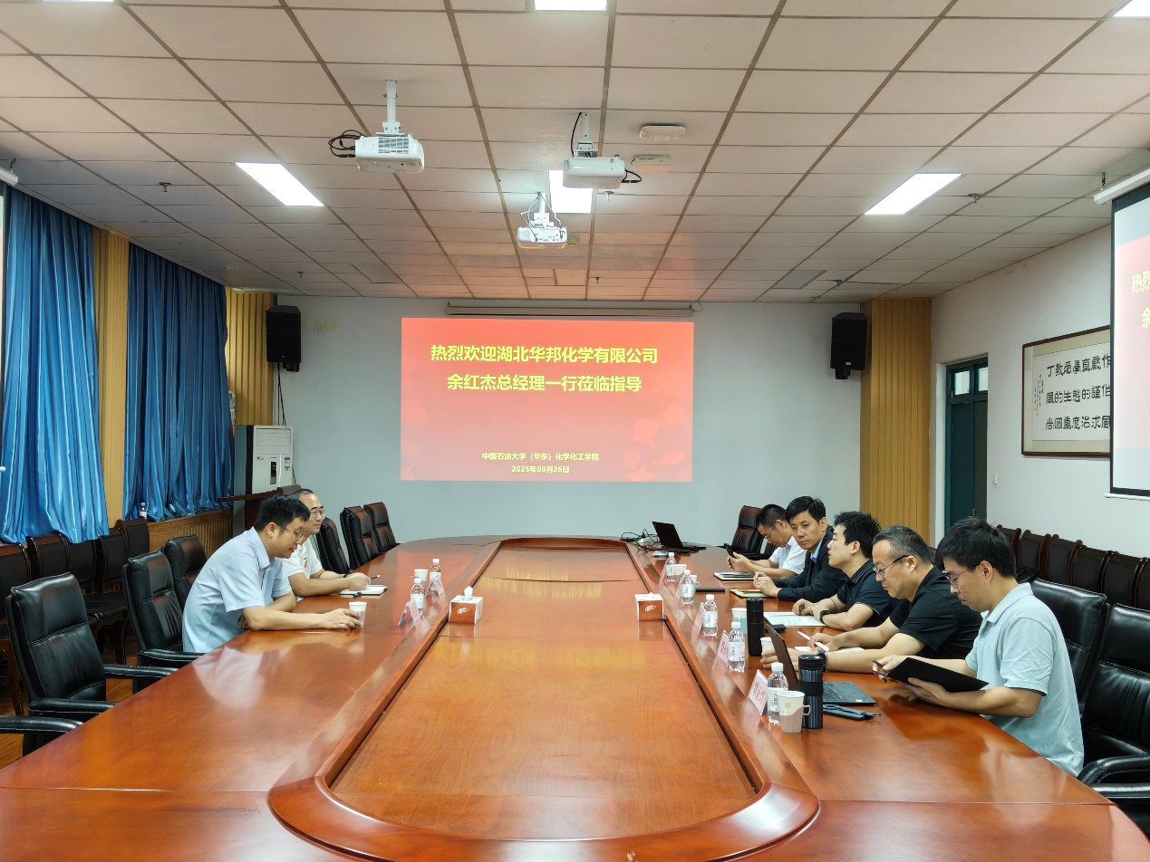 9月26日上午,湖北华邦化学有限公司总经理在武汉校友会秘书长向军的陪同下到访学院,就校企合作、成果转化、人才引进开展交流。本次会议由副院长胡涵主持,党委副书记徐光辉、重质油全国重点实验室副主任柴永明教授、邓文安教授、覃正兴副教授等共同参会。