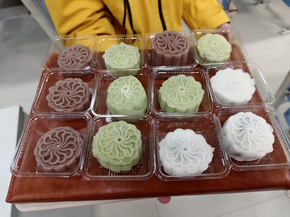 最具挑战性的当属包馅与压制阶段。如何将香甜的馅料完美地包裹进薄厚均匀的皮中,且不留缝隙,成了摆在大家面前的共同难题。起初,不是皮破馅露,就是形态臃肿。然而,在一次次失败与摸索中,各组团员互帮互助,默契配合:有的负责掌控皮馅比例,有的专精于收口技巧,有的则稳稳操持模具。当第一个花纹清晰、形态饱满的冰皮月饼成功脱模时,整个小组都爆发出了成功的欢呼。空气中弥漫着糕点的甜香,活动现场充满了青春的活力与合作的暖意。