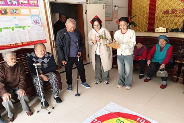 随后,同学们组织了丰富多彩的游戏环节。他们精心准备了猜谜语、套圈等趣味游戏,老人们积极参与,现场气氛十分活跃。同学们耐心地教老人游戏规则,鼓励他们大胆尝试。在欢声笑语中,老人与同学们之间的距离进一步拉近,彼此的感情也更加深厚。