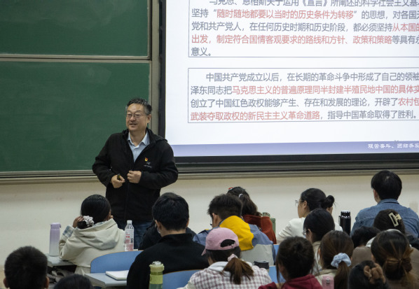 原学院党委书记张永宁为发展对象讲授党课《党的纲领和党的基本路线》。张永宁以“什么是党的纲领”开端,通过列举历史事实,详实阐释了共产主义理想、中国特色社会主义和党的基本路线的深刻内涵。张永宁指出,所有学员都应把握入党动机的深刻内涵,坚定共产主义理想信念,牢记初心使命,练就服务党和人民的过硬本领,赓续红色基因,自觉践行共产党人的优良作风,坚持用党的创新理论知识武装头脑、指导实践、推进工作,始终保持思想上的清醒、政治上的坚定,努力成长为理想远大的新时代青年。
