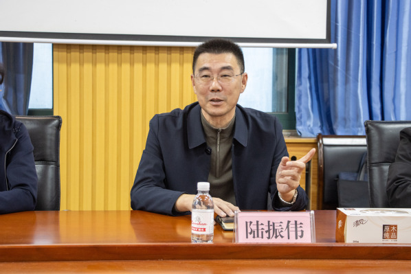 会上,学院副院长金鑫对陆振伟书记一行的到访表示热烈欢迎。在随后的介绍中,金鑫副院长系统介绍了我院的发展历程与独具特色的人才培养体系。他重点阐释了以“大化工”理念为核心的教育模式,强调通过过程建模与智能技术深度融入专业课教学,有效提升学生的工程实践与创新能力。金院长指出,学院致力于为每位本科生制定个性化培养方案,坚持多元化培养路径,确保学生在四年的学习中获得扎实的专业知识、熟练的实践技能与全面的综合素质。他还向来宾展示了截至目前学院可喜的就业成果,详细介绍了毕业生的高就业率及主要就业去向,充分体现了我院人才培养与社会需求的紧密对接。