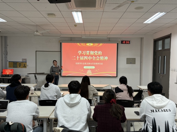 为引导青年学生党员把思想和行动统一到党中央决策部署上来,将个人理想融入强国建设伟业,化院学生会党支部于10月28日在综合楼A420以“深学全会精神·青春建功‘十五五’”为主题,召开学习贯彻党的二十届四中全会精神组织生活。会议由支部书记吴雪莹主持。